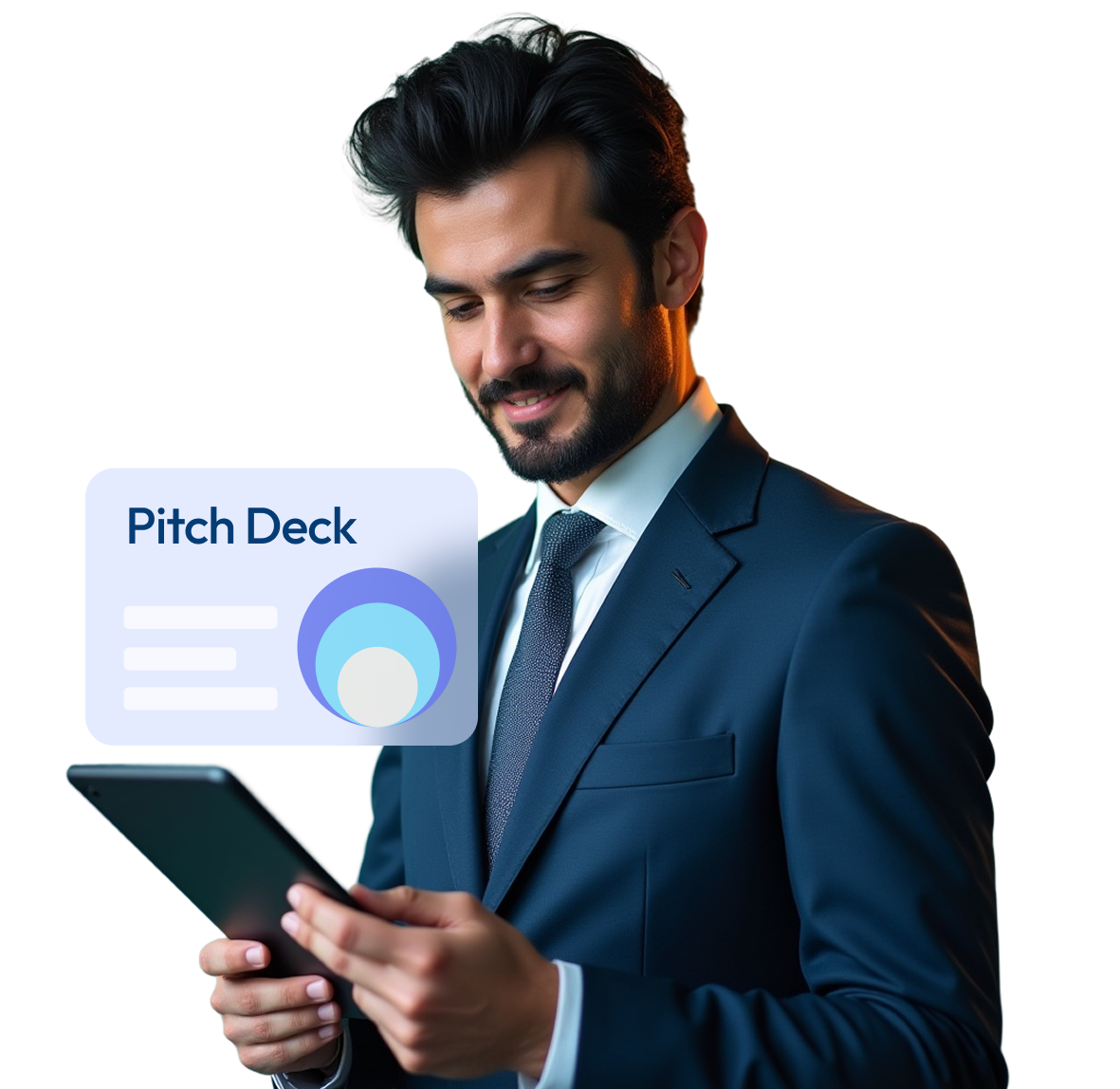 Get pitch-ready fast. Identify gaps, sharpen your story, and build a deck that speaks to investors — all starting with a free audit.
